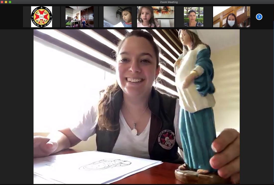 El primer día fue dedicado a nuestra Mamita Dolorosa. Liesel con mucha paciencia y amor, les contó la historia del milagro en el colegio San Gabriel, cuando la imagen en el cuadro de La Dolorosa empezó a parpadear y que desde ese instante la quieren mucho y se volvió muy especial para los quiteños.
