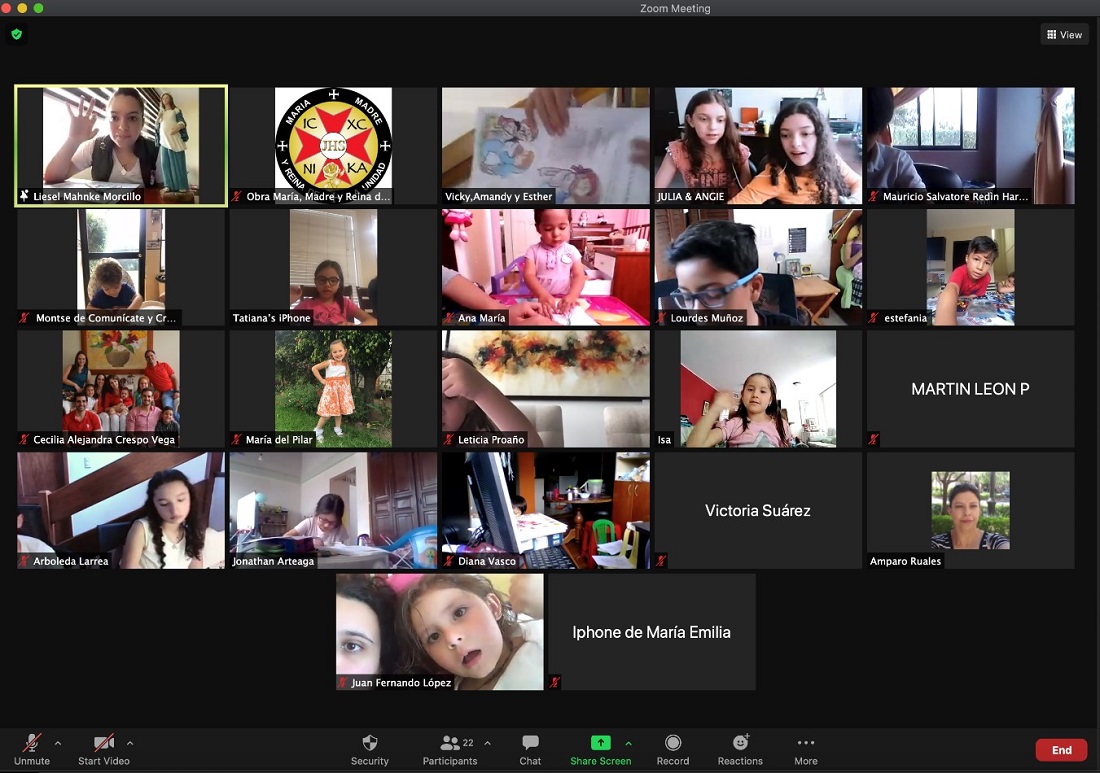 Luego les preguntó: ¿Qué significa ver a la Mamita Virgen llorando? ¿Por qué su tristeza? ¿Qué pasó? Los niños se animaron a dar sus inocentes respuestas. Liesel, los llevó a pensar en cómo se sintió la Virgencita. Los niños respondieron que a ellos les pone triste, por ejemplo, el no poder ir a la casa de sus abuelos.