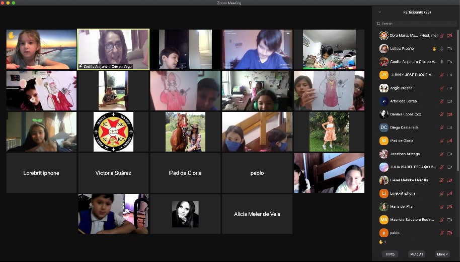 Para concluir, hubo un espacio para preguntas de los niños. Y también colorearon a San Anselmo y se divirtieron enseñándolo en la cámara.