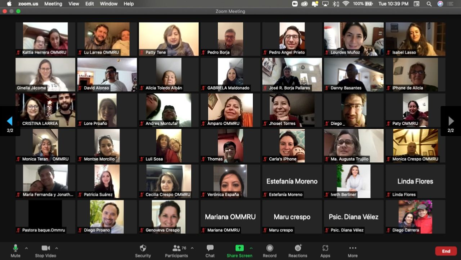 El segundo martes de diciembre, nos reunimos alrededor de cien hermanos de la Obra de Quito y Guayaquil como ha sido costumbre desde el 2020, para bajo la guía de Juan Arturo, los padres Milton y Eddy y con el Hno. David en los últimos meses de 2021, reflexionar sobre la gracia escondida en las Gotitas de Rocío para el alma de la Unidad.