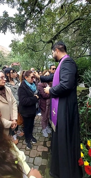 En la mañana, algunos miembros de la Obra, rezamos el Santo Rosario a los pies de la Gruta, para calentar el corazón de nuestra mamita María. Finalizado, los asistentes recibieron el sacramento de la Unción de los Enfermos, de manos del padre Milton.