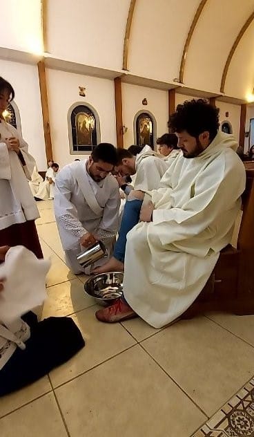 Durante la celebración el padre Milton realizó el lavatorio de pies a doce hermanos escogidos previamente, como símbolo de humildad y entrega de Jesús a sus discípulos durante la Última Cena. Un bello recordatorio de lo que debemos transmitir al otro: amor, humildad y servicio.