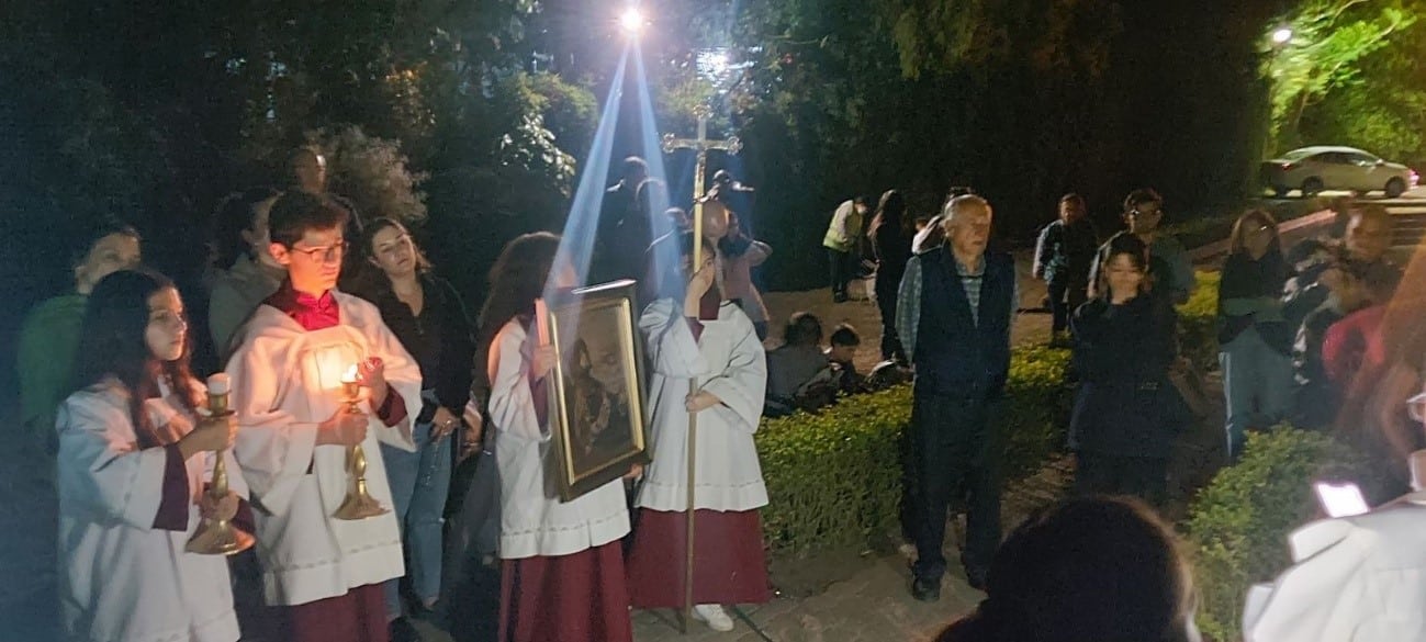 El padre Eddy junto con los monaguillos y fieles durante la peregrinación