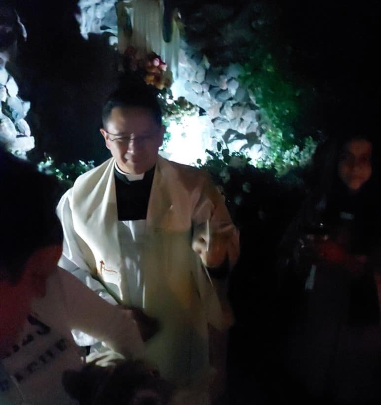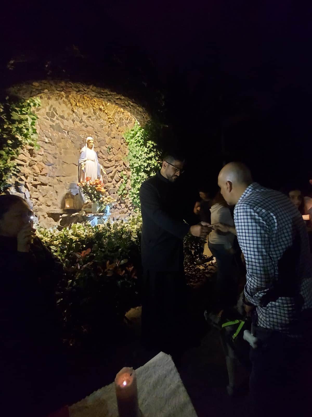 Ya en la gruta, a los pies de la imagen de la Virgen María que reposa en ella, el padre Eddy calentó nuestros corazones con una bella reflexión sobre como San Francisco fue capaz de ver la grandeza del Señor en los animales y en la naturaleza toda. “Nuestras mascotas nos enseñan a amar” mencionó. «Es bueno que cuidemos y amemos a nuestras mascotas», continuó; «pero es importante que nuestro amor trascienda para llegar a amar la voluntad del Señor en nuestra vida y a aceptarla con paz, despojándonos de lo material para llenarnos con Su Espíritu.»