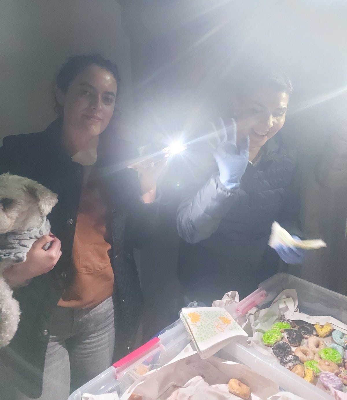 Servidoras de la Fundación María, Madre y Reina de la Unidad, entregando donuts a grandes y pequeños