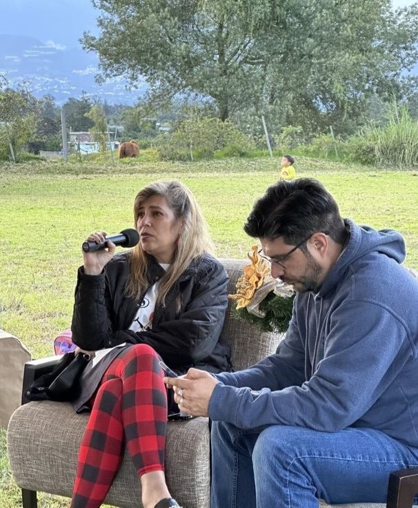 Marcia y el padre Milton durante sus charlas de Adviento