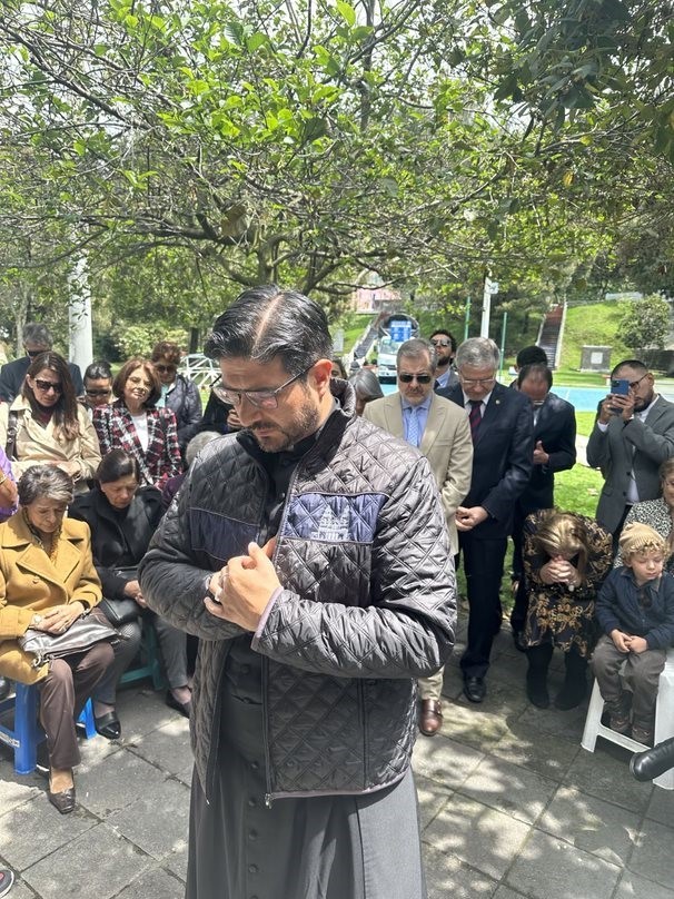 El padre Milton en el momento de la bendición a los presentes
