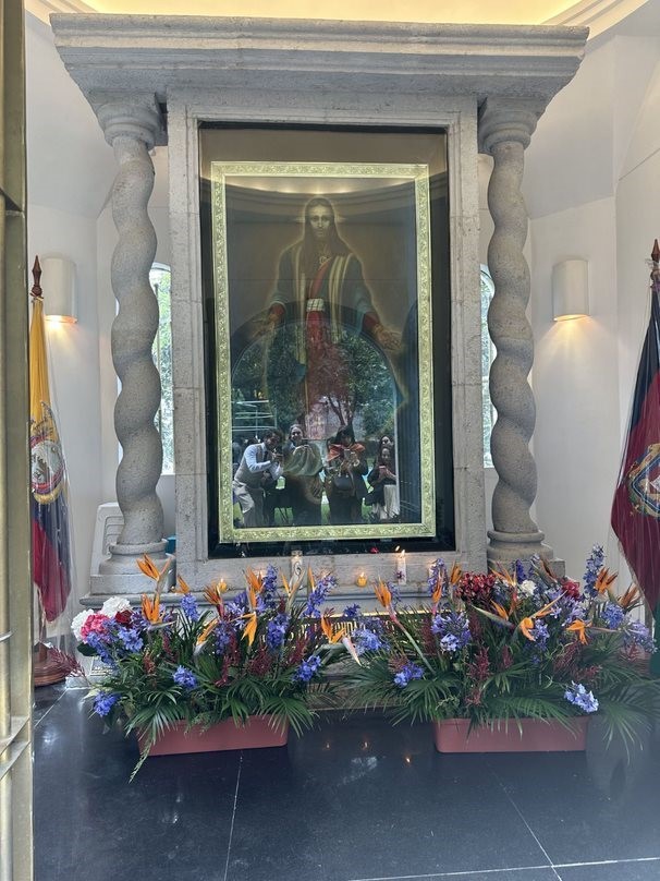 El cuadro del Maestro Jesús del Amor y la Unidad con las ofrendas a sus pies