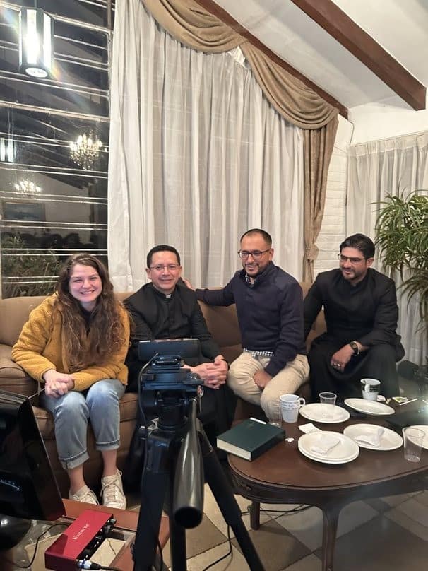 El padre Milton, el hermano David, el padre Eddy y María Emilia (de derecha a izquierda) momentos antes del diálogo
