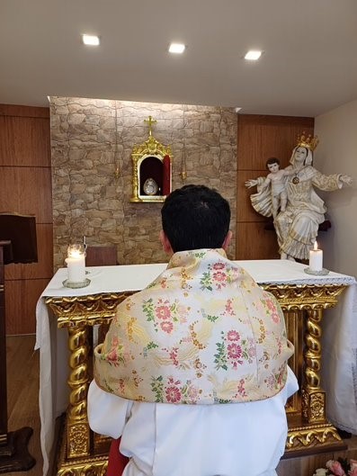 El padre Eddy durante la celebración de la Santa Misa
