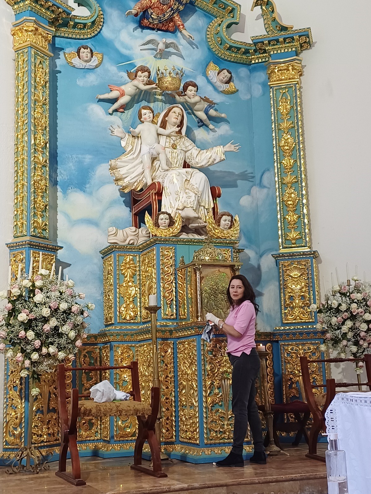 Imagen de María, Madre y Reina de la Unidad, el Padre Milton y los Monaguillos