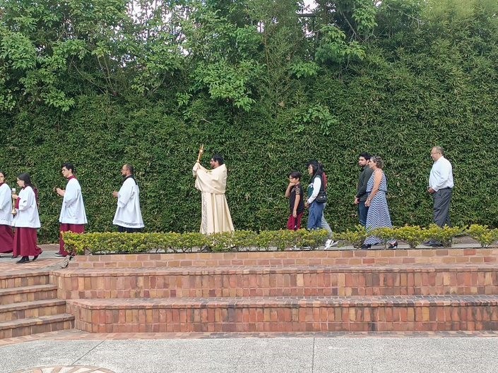 El Santísimo Sacramento fue llevado en procesión al terminar la Santa Misa.