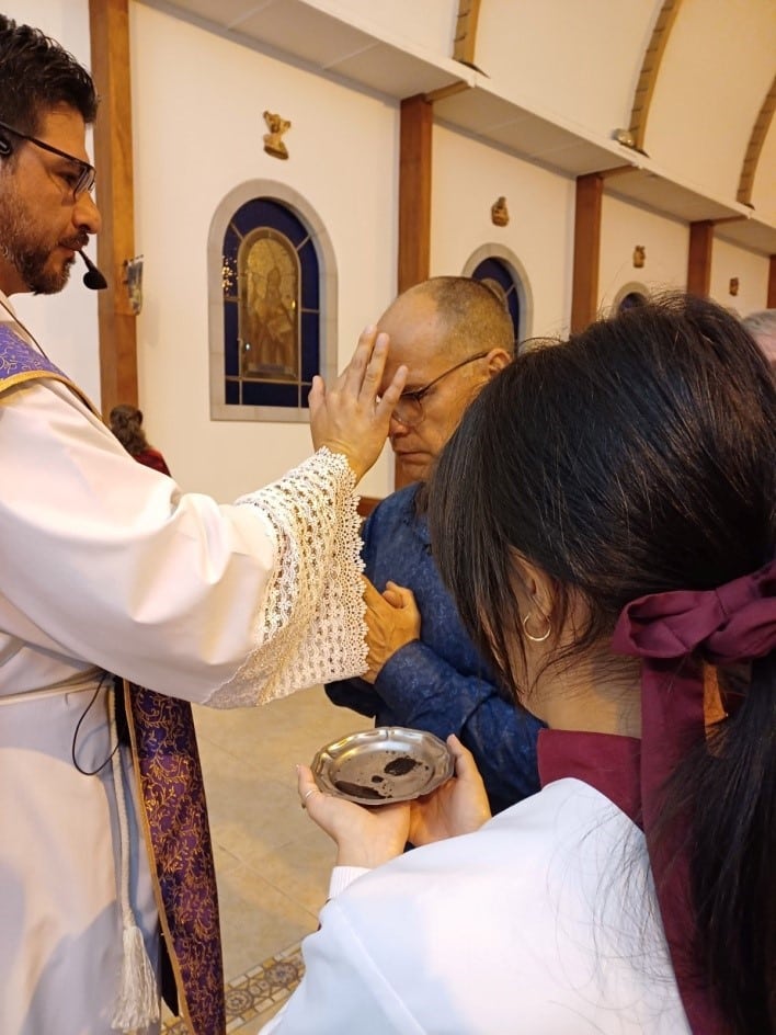“Como miembros de la Obra estamos llamados a buscar el rostro de Jesús Crucificado, a ser fieles a su mirada de infinito Amor y Misericordia. Para esto, durante cuarenta días, vamos a esforzarnos por mermar nuestro yo y tener más de Jesús en cada uno, aun cuando esto implique morir a deseos propios y forjar nuestra voluntad en la renuncia”, fue parte de la invitación que hiciera el padre Milton para participar en la celebración de la Santa Misa y recibir la ceniza.