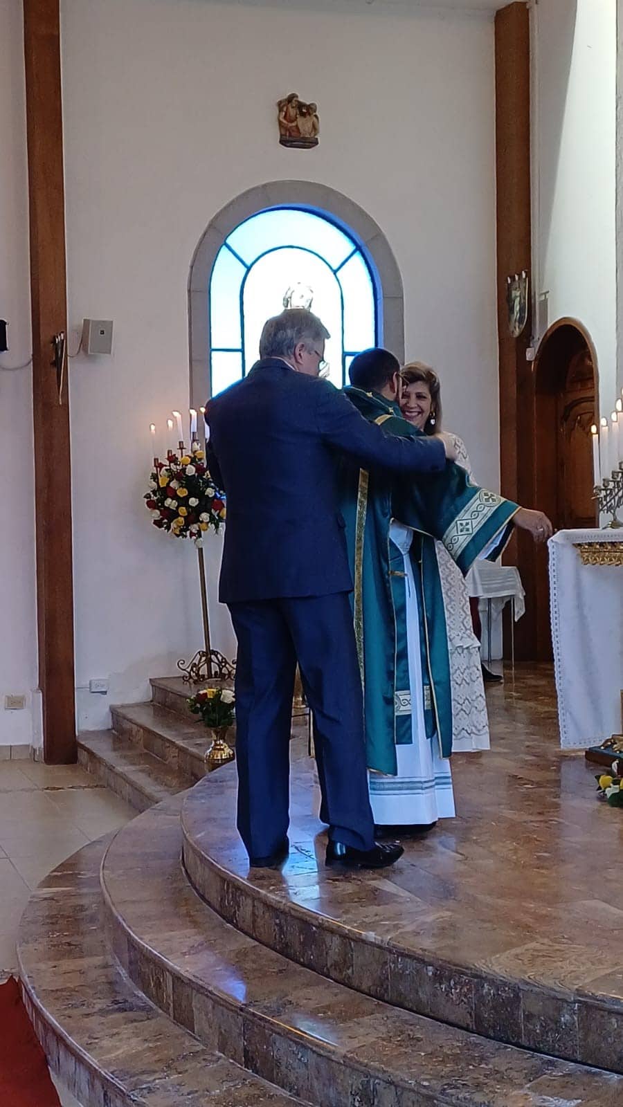 Luego de la Santa Misa, todos compartimos un emotivo ágape de alegría y fiesta. Un bello escenario pensado hasta en el último detalle, que reunió a nuestras cabezas, miembros de la Obra y a la familia del padre David. Festejado y muy amado, el padre David recibió una canción de ensueño realizada por nuestros jóvenes, quienes se la dedicaron con todo su amor. Pudimos disfrutar de fotografías que capturaron momentos inolvidables de la vida del padre David, y de un cielo pintado de color violeta, donde el amor de Dios brilló porque su hijo amado afianzó su “Sí” a Su Amor y Su Santa Iglesia.
