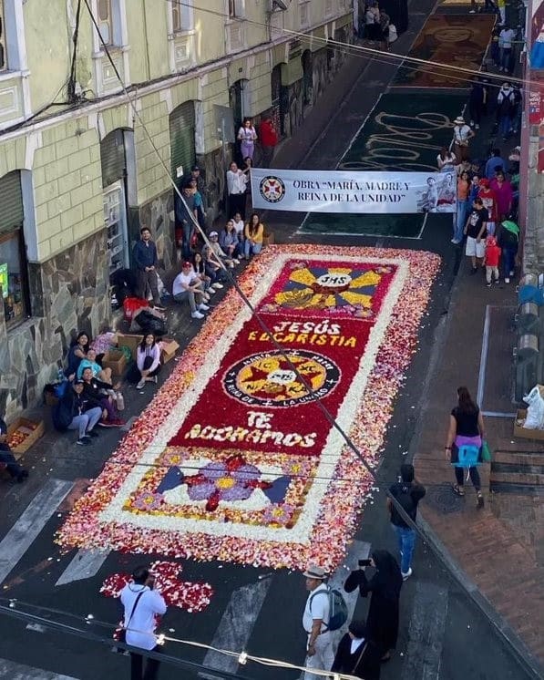 Alfombra de la Obra de la Unidad, elaborada con pétalos de rosas