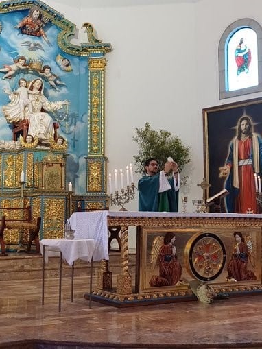 El padre Eddy y el padre David, durante la Santa Misa