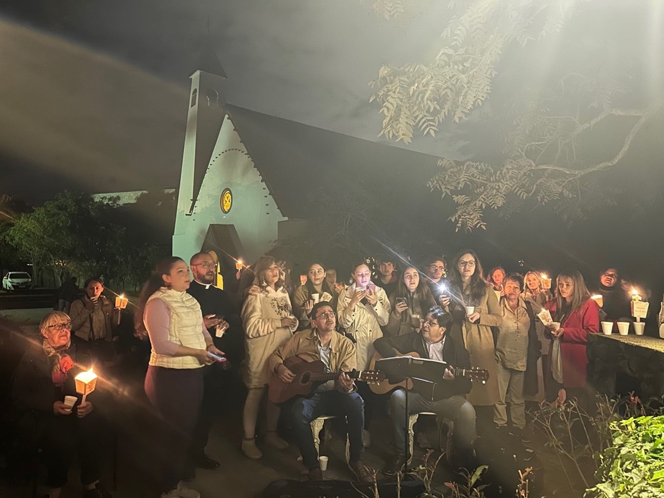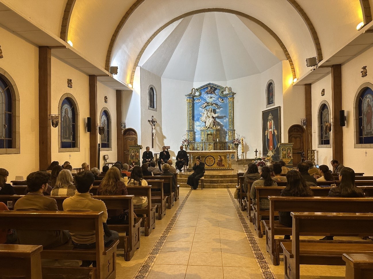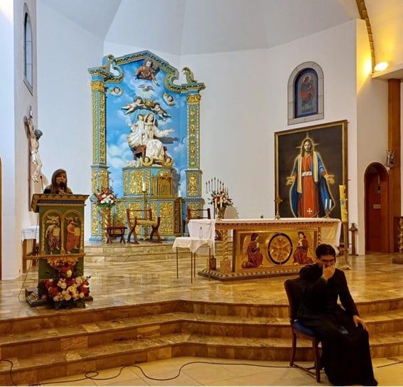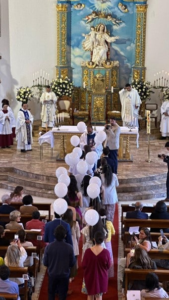 A partir del 26 de mayo hasta el 1 de junio, iniciamos la Semana de Jubileo por la ordenación de nuestro nuevo sacerdote. El lunes 26, tuvimos un especial encuentro, en el que pudimos ver a Juan Arturo, después de semanas de ausencia debido a sus tratamientos médicos. Fue un momento profundamente conmovedor para todos los que lo esperábamos en la Capilla, con ilusión por su charla. Nos habló de los tiempos sacerdotales de la Obra que él los divide en tres: Tiempo del Padre Dios, con el padre Alberto Vitadello, primer Moderador; Tiempo del Hijo, con el padre Juan Antonio Abril, segundo Moderador; Tiempo del Espíritu Santo que suscitó en los corazones de tres jóvenes, nacidos en las comunidades de la Obra, el consagrar sus vidas al Sacerdocio para servicio de Dios y de su pueblo. Juan Arturo cuando recibe un libro que contenía mensajes de cariño y buenos deseos de salud, escritos por los miembros de las Comunidades El martes 27, Marcia, en su charla sobre la espiritualidad de la Obra, nos reveló los tesoros que surgen del Corazón de Dios Trino y Uno, cuando el alma pone su voluntad y decisión radical en Él. “La voluntad, el compromiso y la decisión comienzan cuando el alma se abandona en Dios, y Él, paso a paso, la lleva a vivirlo, contemplarlo y amarlo tan profundamente que el fruto de esa vida entregada a Dios es la sabiduría.” Juan Arturo, el padre Milton, el padre David y el padre Eddy mientras dan su testimonio El miércoles 28, tuvimos la Gracia de escuchar a nuestros sacerdotes, el padre Milton, el padre Eddy y el padre David, en su conmovedor testimonio. Compartieron su camino de vivencias, tropiezos e inquietudes y nos transmitieron su sentimiento de gratitud al reconocer que no habrían alcanzado su entrega total sin la acogida, la mano amorosa, el consejo oportuno y la formación precisa que recibieron del Señor, a través de Marcia y Juan Arturo. Peregrinos y miembros de las comunidades de Quito cantando a los pies de nuestra Madre, en la Gruta de la Gracia de Dios El Jueves 29, los peregrinos de Francia, Isla de Guadalupe, Colombia, Guayaquil y de las comunidades de Quito, iluminamos la hermosa Gruta de la Madre de Dios con antorchas, para dar una hermosa serenata a nuestra Madre del Cielo. Llenamos de ternuras a nuestra Mamita, cantando con el corazón, y pusimos bajo su protección la Ordenación Sacerdotal de nuestro amado diácono David Montufar. El padre David y el padre Eddy en la serenata, mientras realizan la traducción para los peregrinos franceses El sábado 31, peregrinos y miembros de la Obra nos encontramos para celebrar, en la Capilla de la Obra, a nuestra Madre y Reina de la Unidad, a quien el padre David, con todo su corazón, consagró su vocación y camino a la ordenación sacerdotal. El padre recibió de Marcia el Talid; de Juan Arturo, una imagen del Buen Pastor; de Marcia y Javier, la Cruz de la Unidad; y del padre Milton y el padre Eddy, las llaves del Sagrario de la Capilla. Fue conmovedor cuando una larga fila de nuestros jóvenes, en el momento de las ofrendas, pasaron a entregar un globo blanco al padre David, junto con una carta que ellos mismos escribieron pensando en qué palabras podrían regalar al corazón del padrecito, que simbolizaran cómo el Señor lo sostiene y lo lleva siempre. Los jóvenes en el momento de las ofrendas Al finalizar la celebración eucarística, los asistentes nos acercamos a besar las manos consagradas del nuevo sacerdote, en un gesto de veneración, respeto y gratitud hacia Jesús, que habita en él por el sacramento del orden sacerdotal. Luego de la Misa, los miembros de la Obra nos reunimos en un ágape fraterno a celebrar al nuevo Sacerdote de la Unidad. Los jóvenes de la Obra en el ágape El domingo 1 de junio, llegado el mediodía, los fieles asistentes a la misa dominical en nuestra capilla contemplamos con alegría la entrada en procesión de los monaguillos, quienes precedían a los sacerdotes: el padre Milton, el padre Eddy, el padre Alberto, amigo cercano de nuestro padrecito, el padre Johnny Suquillo, párroco de Puembo, y, por supuesto, el padre David, quien celebró su primera Misa para los fieles de la parroquia. Así fue como cerramos una semana de gracias del Cielo, marcada por la alegría de contar con un nuevo sacerdote para la Obra de la Unidad y para nuestra Santa Iglesia Católica. Durante cada uno de los días de la Semana de Jubileo, participamos, de manera presencial y virtual, cerca de doscientas personas.