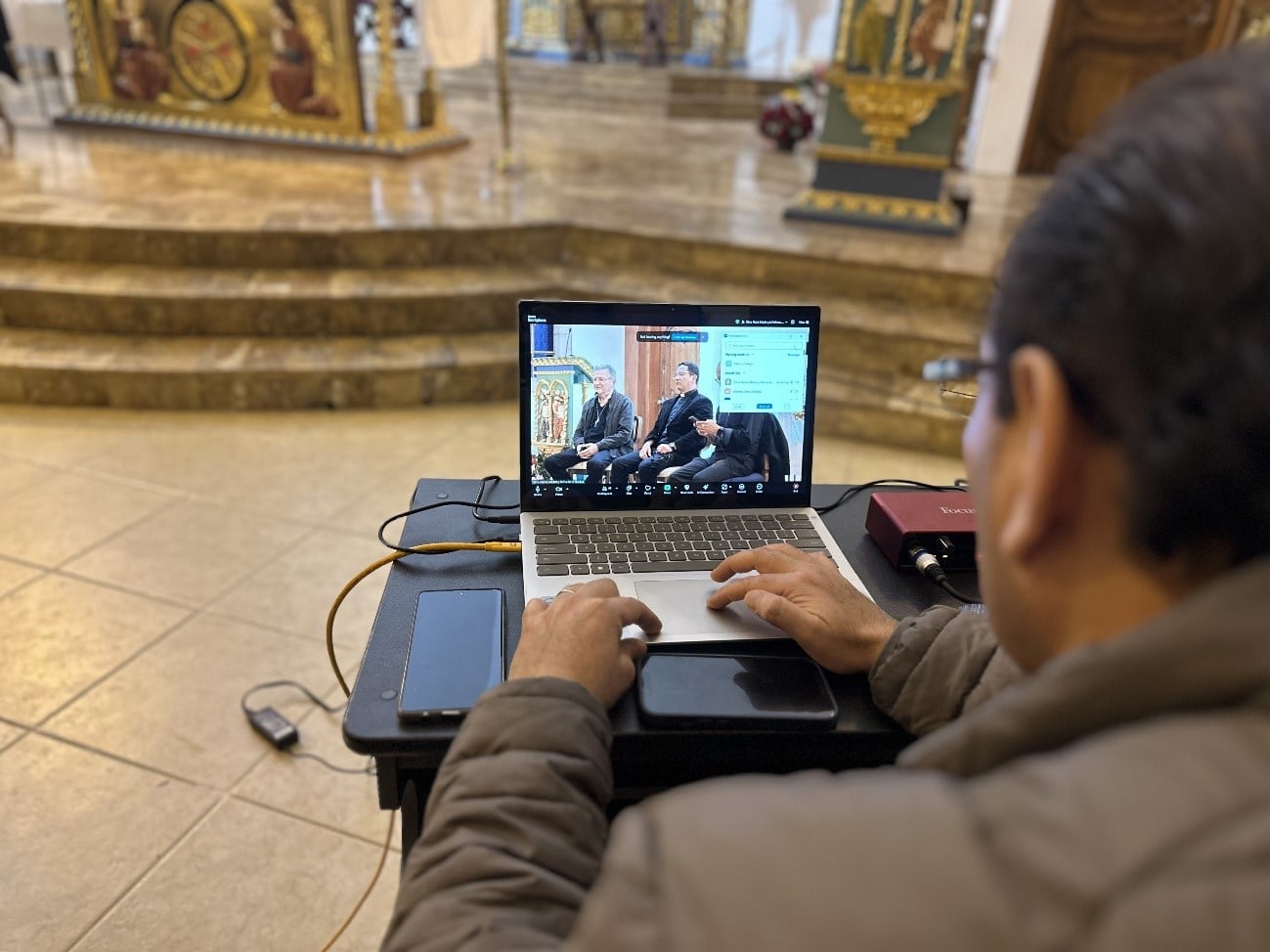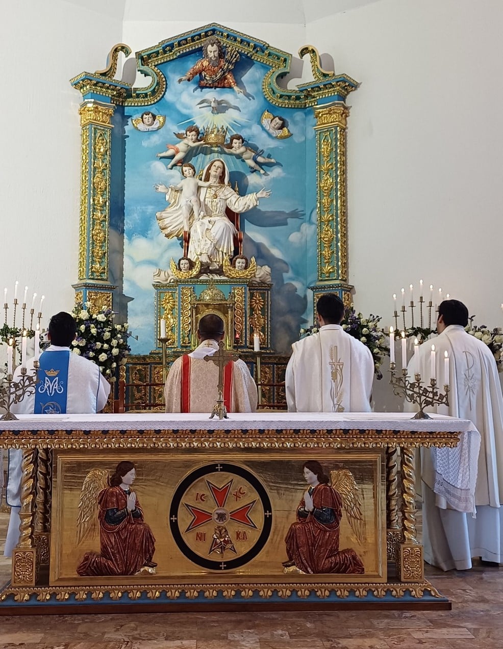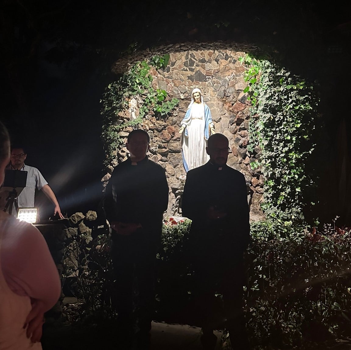 A partir del 26 de mayo hasta el 1 de junio, iniciamos la Semana de Jubileo por la ordenación de nuestro nuevo sacerdote. El lunes 26, tuvimos un especial encuentro, en el que pudimos ver a Juan Arturo, después de semanas de ausencia debido a sus tratamientos médicos. Fue un momento profundamente conmovedor para todos los que lo esperábamos en la Capilla, con ilusión por su charla. Nos habló de los tiempos sacerdotales de la Obra que él los divide en tres: Tiempo del Padre Dios, con el padre Alberto Vitadello, primer Moderador; Tiempo del Hijo, con el padre Juan Antonio Abril, segundo Moderador; Tiempo del Espíritu Santo que suscitó en los corazones de tres jóvenes, nacidos en las comunidades de la Obra, el consagrar sus vidas al Sacerdocio para servicio de Dios y de su pueblo. Juan Arturo cuando recibe un libro que contenía mensajes de cariño y buenos deseos de salud, escritos por los miembros de las Comunidades El martes 27, Marcia, en su charla sobre la espiritualidad de la Obra, nos reveló los tesoros que surgen del Corazón de Dios Trino y Uno, cuando el alma pone su voluntad y decisión radical en Él. “La voluntad, el compromiso y la decisión comienzan cuando el alma se abandona en Dios, y Él, paso a paso, la lleva a vivirlo, contemplarlo y amarlo tan profundamente que el fruto de esa vida entregada a Dios es la sabiduría.” Juan Arturo, el padre Milton, el padre David y el padre Eddy mientras dan su testimonio El miércoles 28, tuvimos la Gracia de escuchar a nuestros sacerdotes, el padre Milton, el padre Eddy y el padre David, en su conmovedor testimonio. Compartieron su camino de vivencias, tropiezos e inquietudes y nos transmitieron su sentimiento de gratitud al reconocer que no habrían alcanzado su entrega total sin la acogida, la mano amorosa, el consejo oportuno y la formación precisa que recibieron del Señor, a través de Marcia y Juan Arturo. Peregrinos y miembros de las comunidades de Quito cantando a los pies de nuestra Madre, en la Gruta de la Gracia de Dios El Jueves 29, los peregrinos de Francia, Isla de Guadalupe, Colombia, Guayaquil y de las comunidades de Quito, iluminamos la hermosa Gruta de la Madre de Dios con antorchas, para dar una hermosa serenata a nuestra Madre del Cielo. Llenamos de ternuras a nuestra Mamita, cantando con el corazón, y pusimos bajo su protección la Ordenación Sacerdotal de nuestro amado diácono David Montufar. El padre David y el padre Eddy en la serenata, mientras realizan la traducción para los peregrinos franceses El sábado 31, peregrinos y miembros de la Obra nos encontramos para celebrar, en la Capilla de la Obra, a nuestra Madre y Reina de la Unidad, a quien el padre David, con todo su corazón, consagró su vocación y camino a la ordenación sacerdotal. El padre recibió de Marcia el Talid; de Juan Arturo, una imagen del Buen Pastor; de Marcia y Javier, la Cruz de la Unidad; y del padre Milton y el padre Eddy, las llaves del Sagrario de la Capilla. Fue conmovedor cuando una larga fila de nuestros jóvenes, en el momento de las ofrendas, pasaron a entregar un globo blanco al padre David, junto con una carta que ellos mismos escribieron pensando en qué palabras podrían regalar al corazón del padrecito, que simbolizaran cómo el Señor lo sostiene y lo lleva siempre. Los jóvenes en el momento de las ofrendas Al finalizar la celebración eucarística, los asistentes nos acercamos a besar las manos consagradas del nuevo sacerdote, en un gesto de veneración, respeto y gratitud hacia Jesús, que habita en él por el sacramento del orden sacerdotal. Luego de la Misa, los miembros de la Obra nos reunimos en un ágape fraterno a celebrar al nuevo Sacerdote de la Unidad. Los jóvenes de la Obra en el ágape El domingo 1 de junio, llegado el mediodía, los fieles asistentes a la misa dominical en nuestra capilla contemplamos con alegría la entrada en procesión de los monaguillos, quienes precedían a los sacerdotes: el padre Milton, el padre Eddy, el padre Alberto, amigo cercano de nuestro padrecito, el padre Johnny Suquillo, párroco de Puembo, y, por supuesto, el padre David, quien celebró su primera Misa para los fieles de la parroquia. Así fue como cerramos una semana de gracias del Cielo, marcada por la alegría de contar con un nuevo sacerdote para la Obra de la Unidad y para nuestra Santa Iglesia Católica. Durante cada uno de los días de la Semana de Jubileo, participamos, de manera presencial y virtual, cerca de doscientas personas.