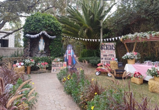 La Gruta de la Gracia de Dios y uno de los stands bellamente decorados para esta jornada