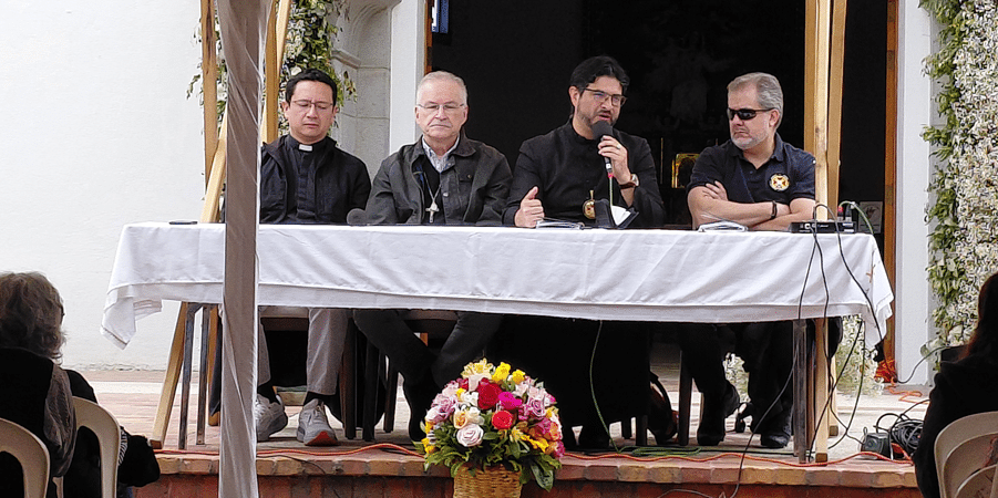 El padre Eddy, Juan Arturo, el padre Milton y Roberto  durante la charla