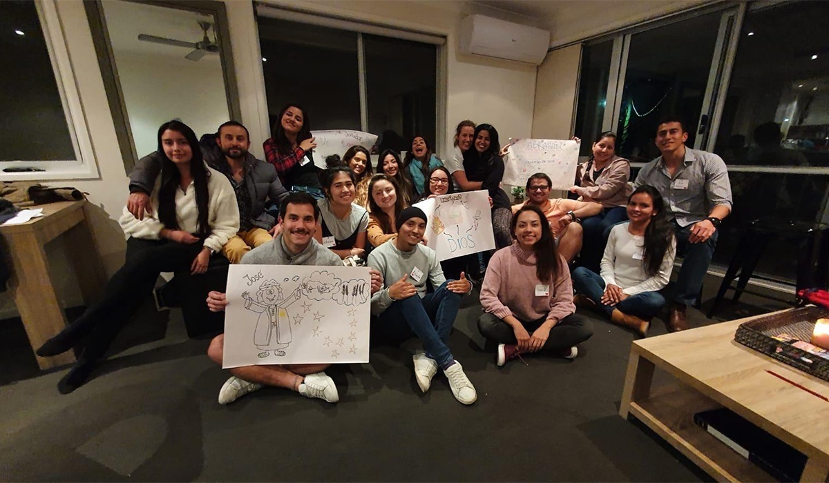 En el año 2018, Nicolás Palacios; hijo de María del Pilar y Oscar, miembros de la Obra en Chia – Colombia; viene a Ecuador y vive un proceso cercano con las familias en San Rafael, donde conoce más a fondo la espiritualidad y puede tener diálogos importantes con Marcia, el padre Milton, Juan Arturo y, especialmente, con María Emilia, cabeza general de los jóvenes. Luego, regresa a Australia decidido a fundar la Obra en ese país, y reúne un grupo de muchachos, en su mayoría de origen colombiano, que buscaban un camino de oración y de práctica cristiana.